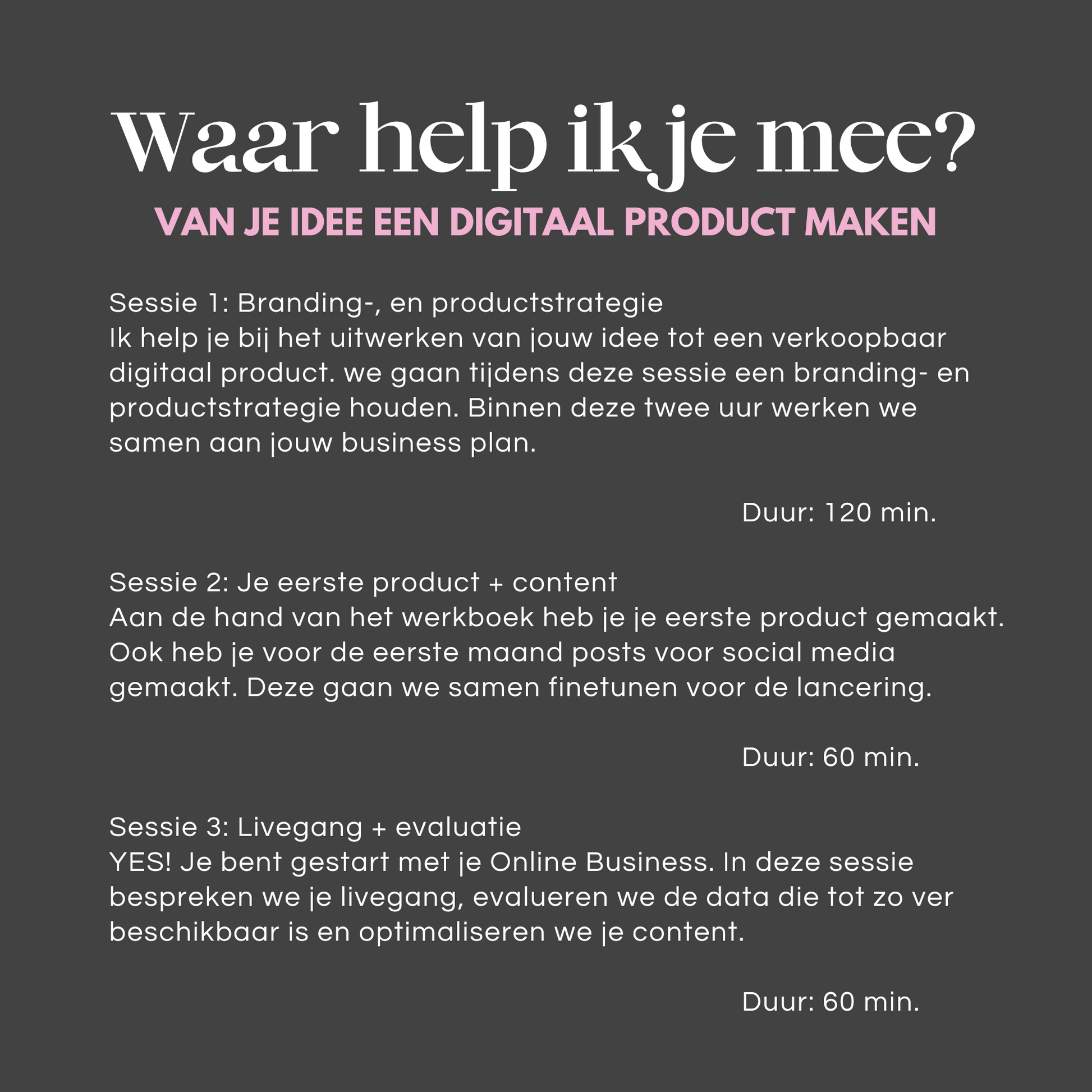- 3 maanden digitale ondersteuning: Ik sta voor je klaar met advies en begeleiding.