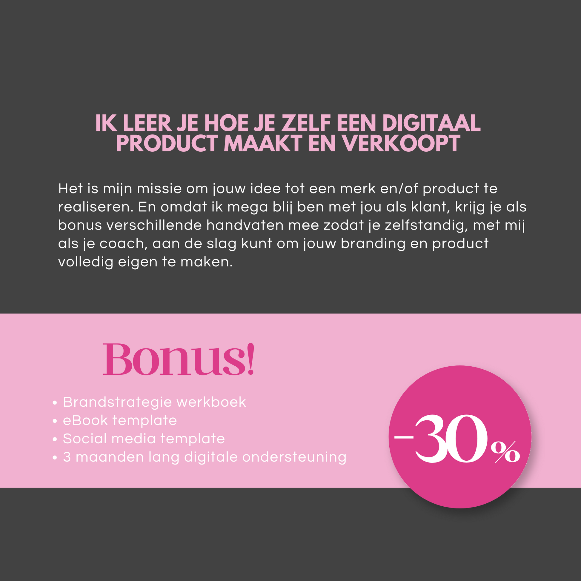 Ik ben je mega dankbaar! Dankzij jou kan ik deze business runnen. En als member van de WOEM community, bied ik je de 1:1 coaching aan met 30% korting! Dit is een unieke link die niet op de webshop te vinden is.